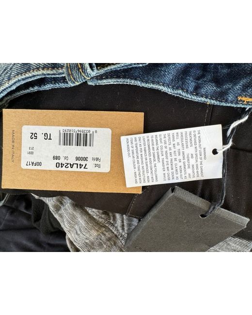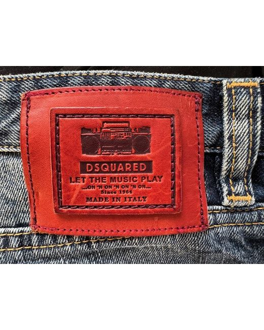 DSquared Jeans mod 74LA240, worn look style. 100% Cotton blue denim. Made in Italy. Is marked size 52, which I guess is Italian size 52. Inner leg is approx 82cm. Closed with zip. The jeans has a few details as shown on the images.