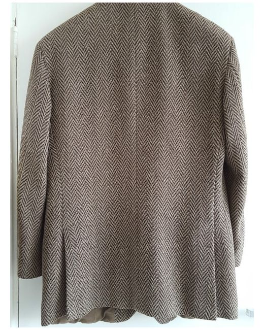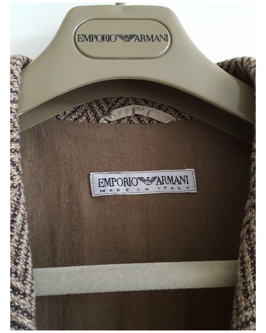 Long unavailable patterned wool jacket/coat made by renowned Italian fashion house Giorgio Armani, one of its luxury Emporio Armani pieces. The Emporio Armani label focuses on trends and modern traits, featuring trendy ready-to-wear and runway collections.