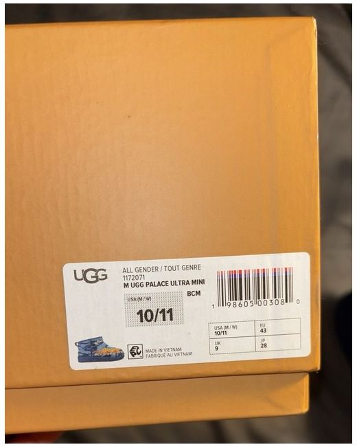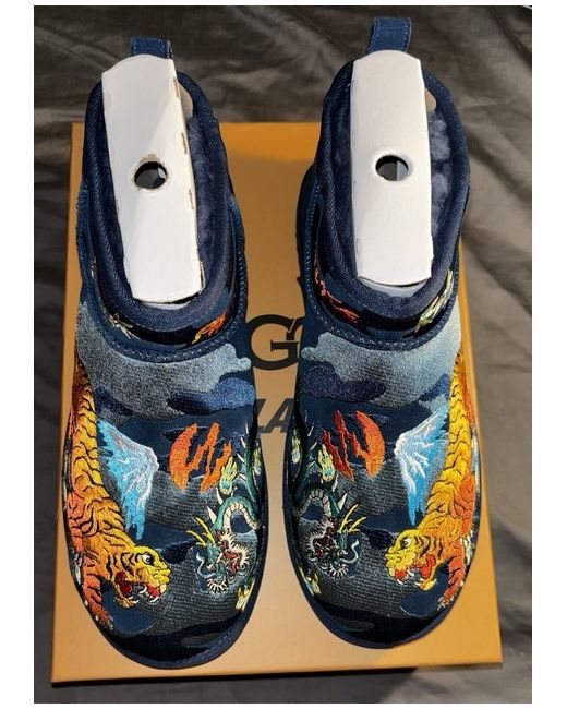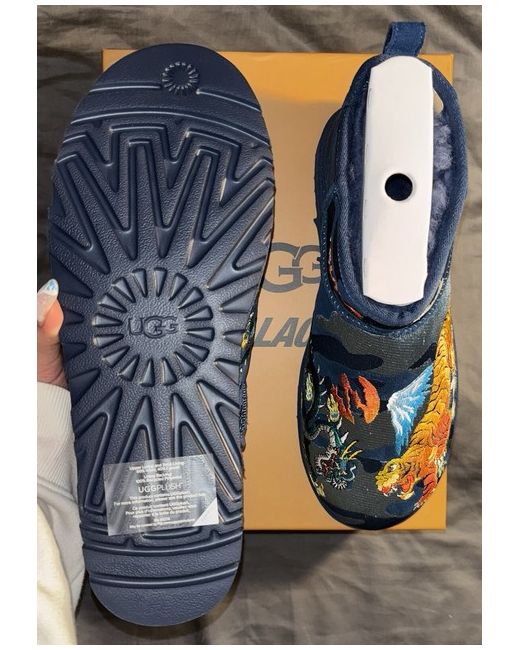 This Palace x Ugg navy boot in UK size 9 is a collaboration between the two famous brands, combining style and comfort. The boot features a sneaker style with a blue colour, making it a trendy and versatile choice for men's footwear. Feel free to message for more pics on these shoes !!