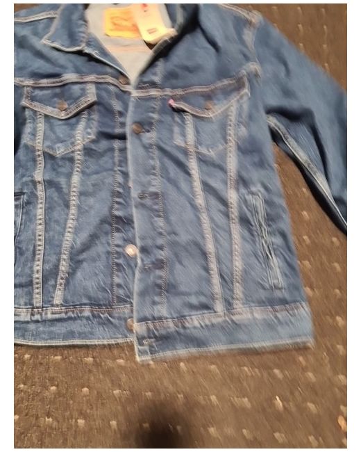 The jacket, in a classic blue hue, is designed with a regular fit and is a size large, catering to the needs of the modern man. Its outer shell is made from durable cotton, ensuring comfort and longevity.
