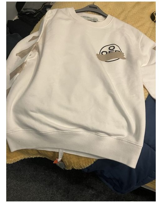 Off white sweatshirt large great quality of material with tags and a receipt for bar code enclosed for authenticity offers will be considered beige emblem new paid 335 OFFERS WILL BE CONSIDERED ( Sensible )