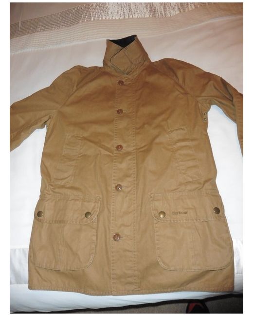 It is basically a l ess boxy, (Tailored) Unwaxed Bedale with button s and studs. Barn - Field Jacket - Chore Jacket – Utility Jacket. UNWAXED - Sandstone. Usual BARBOUR – TOP quality. WASHABLE –unlike wax Barbours !