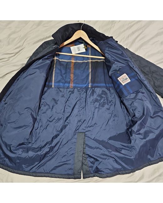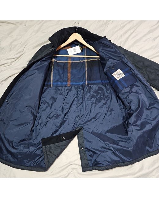 perfect mid length. versatile for all seasons, quilted barbour coat with hand warmer chest pockets 5 pockets in total 4 outer pockets 1 inner pocket neck warmer stand up buttoned collar classic barbour design. perfect coat. pls contact for further information grab a excellent coat at an excellent price.