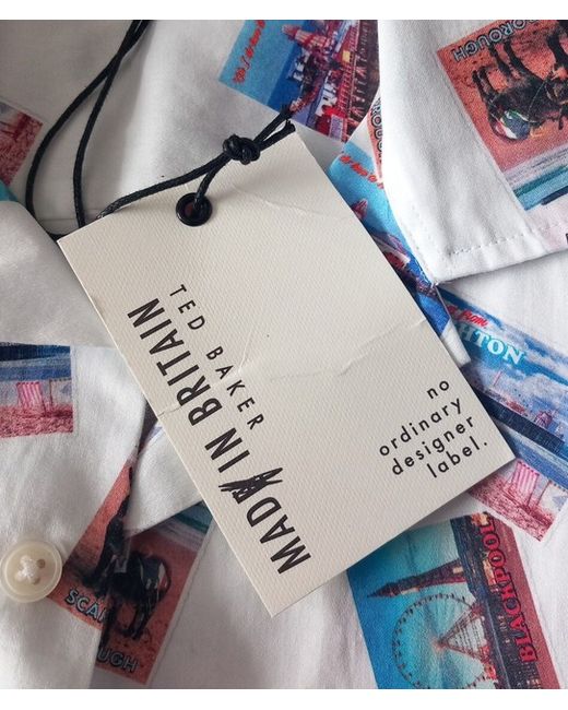 BN CHOCKA Reverse British Postcards Button Shirt TB 3/UK M da Men di colore Bianco