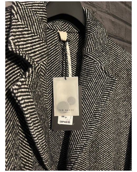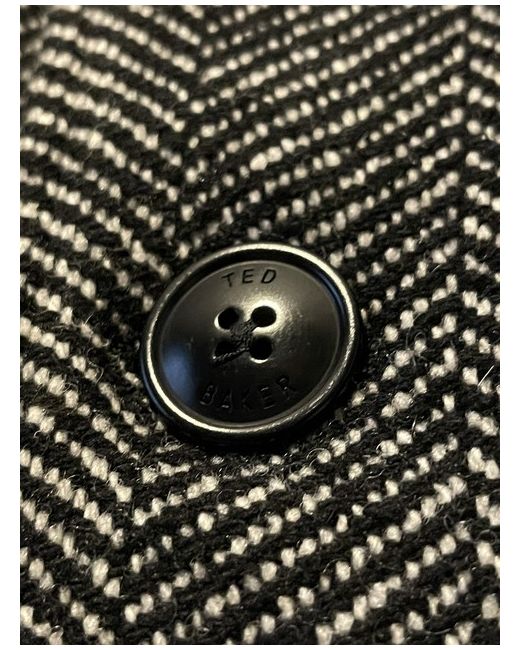 ted baker travers chevron long coat. Bearing the hallmarks of timeless design with its clean lines, this jacket is by none other than Ted Baker. Made from a blend of fabrics imbued with wool, it is longer in length and fastens with neat buttons for easy on and off.