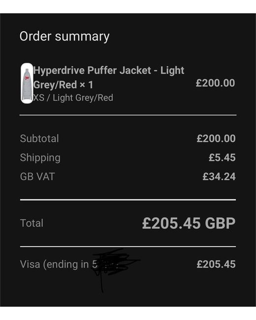 Grey and red trapstar puffer authenticity guaranteed by proof of payment
