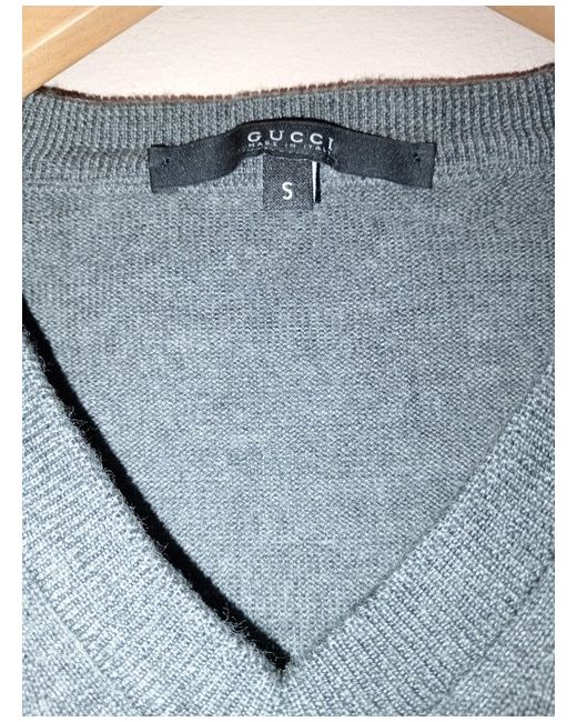 Crafted with meticulous care in Italy, this Men's Gucci V-Neck Jumper is a testament to timeless style and comfort. The fine knit wool construction ensures warmth and ease of movement, making it an ideal choice for casual occasions. Its versatile grey hue complements a variety of outfits, making it a must-have addition to any discerning wardrobe. The jumper features a classic V-neck design, embodying a perfect blend of elegance and relaxation. With its regular fit in size small, it caters to a sleek silhouette while promising all-day comfort. This piece is a true representation of Gucci's commitment to quality and contemporary fashion.