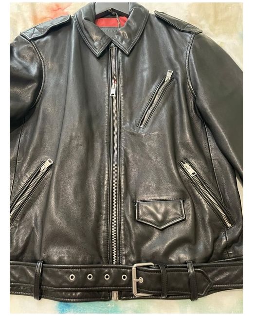 Leather jackets. The Monza is new. Regular fit. Smooth leather. With a recycled red lining. Main: 100% lamb leather Lining: 100% recycled polyester. Pit to pit- 54 cm, length- 67 cm, shoulder- 46 cm, sleeve length- 64cm.