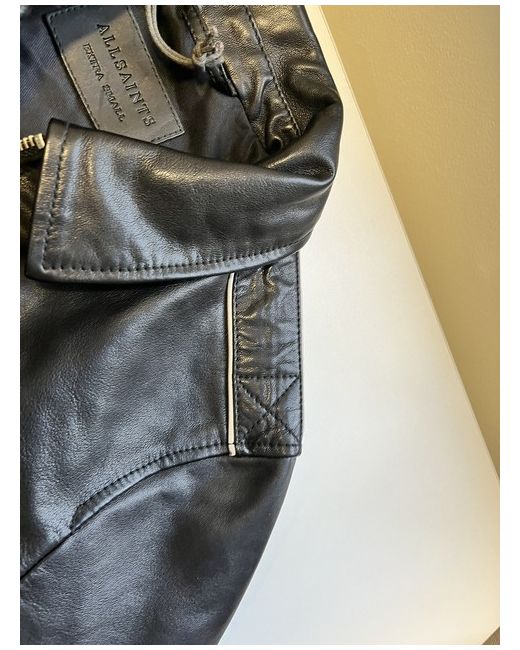 ALL SAINTS genuine soft leather jacket. 100% sheep leather. Polyester lining. Double jet pockets. Regular fit styling. Centre front hem tab.