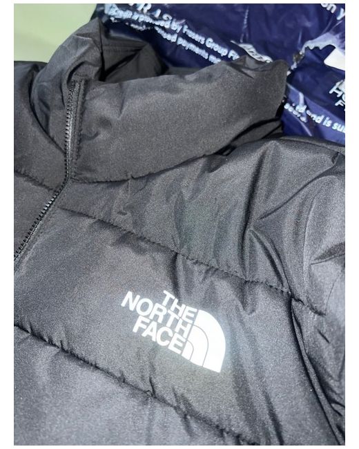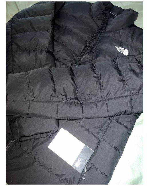This is a classic black polyester puffer jacket by The North Face, featuring a short length, zip closure, and a softshell fabric type. The jacket is lined with polyester and insulated with polyester filling. It is a size medium with a regular fit, suitable for casual occasions. The style is influenced by outdoor and retro themes, with a lightweight design perfect for autumn, winter, and spring seasons. Never worn , brand new with tags and original packaging.