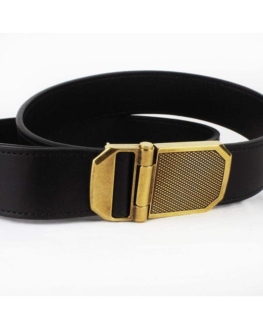 Dunhill Black Leather Belt. Dunhill black leather belt. Dunhill Tie. Clip fastening buckle with press release. An antique brass tone buckle in an engraved engine turn pattern. © Renascence. Elie Saab Earring.
