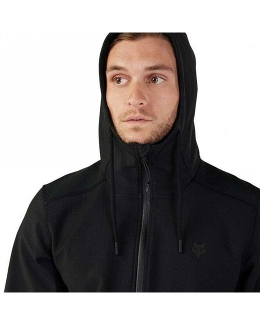 Fox head silicone heat transfer on left chest and back shoulder silicone transfer fox wordmark. YKK waterproof centre front zipper. Waterproof stretch woven bonded to soft knit interior. Versatile midweight softshell jacket perfect for cold weather conditions.