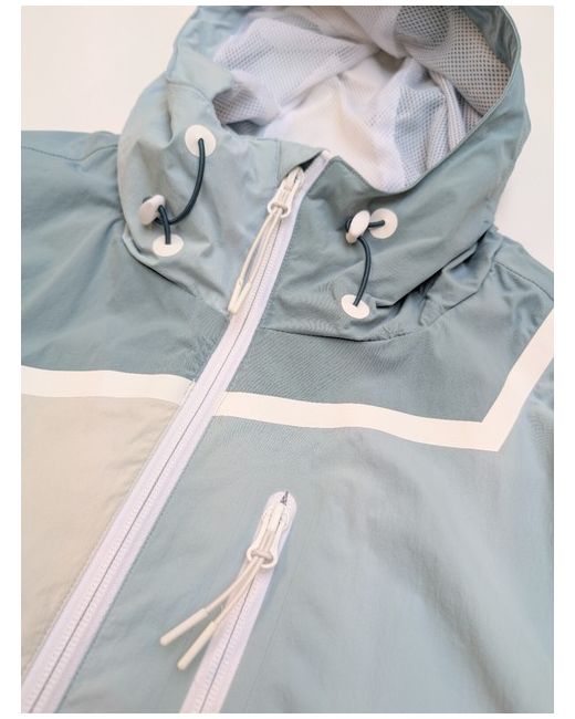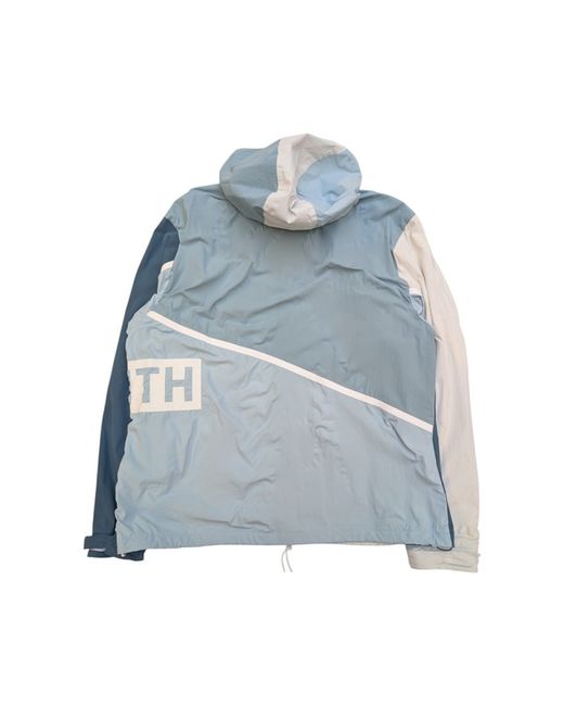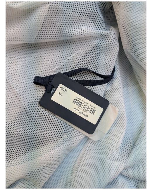 Item : Kith Madison Jacket - Summit. adjustable hood with peak brim. Length (Top of neckline to bottom) 30". double front zipper. Chest (Pit to Pit) - 24". 100% nylon exterior.
