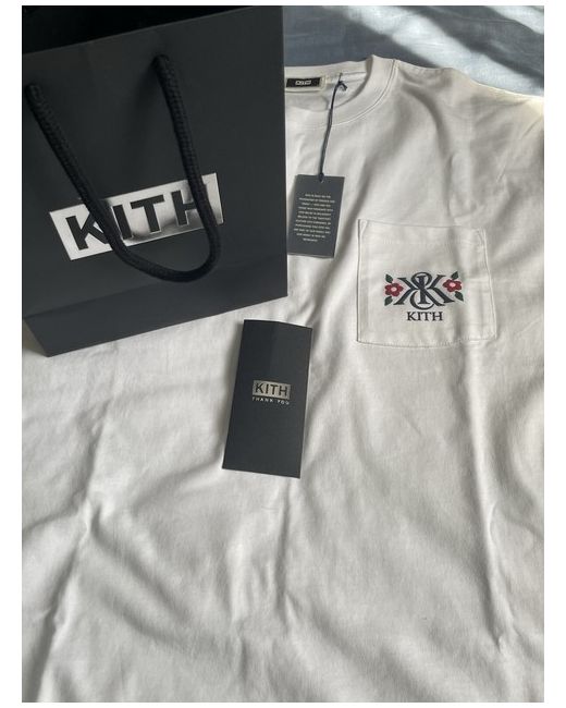 This Kith tee in white is a must-have for any stylish man's wardrobe. Made with high-quality materials, this regular-sized t-shirt features the iconic Kith logo adding a touch of sophistication to any outfit. The tee is perfect for any casual occasion and is sure to make a statement. The Kith tee is a great addition to any collection and is perfect for those who appreciate quality and style. Whether you're a fan of the brand or simply looking for a stylish t-shirt, this tee is the perfect choice.