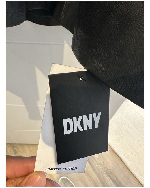 Elevate your style with this stunning DKNY leather jacket. Crafted with premium quality leather, this biker-style jacket features a full zip closure and pockets for added convenience. The jacket is perfect for men or women who want to make a statement with their fashion choices. The black colour of the jacket goes well with any outfit, making it a versatile addition to your wardrobe. It is suitable for regular size types and is available in size L. This jacket is perfect for those who want to add a touch of sophistication to their look.