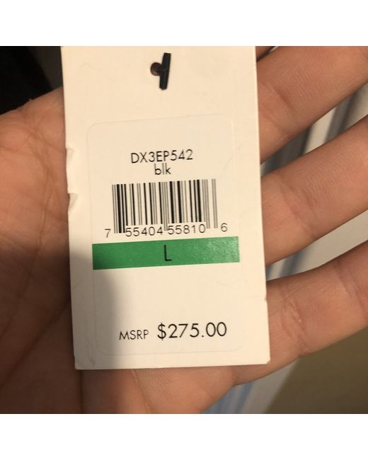 This stylish DKNY trench coat is a must-have for any fashionable man's wardrobe. Made of high-quality polyester material, it is both durable and comfortable to wear. The timeless black colour and sleek design make it perfect for any occasion, whether it's a formal event or a night out with friends. With its size L, this coat is tailored to fit most men comfortably. The brand DKNY is known for its exceptional quality and attention to detail, and this coat is no exception. Don't miss out on the chance to own this stunning piece of clothing!