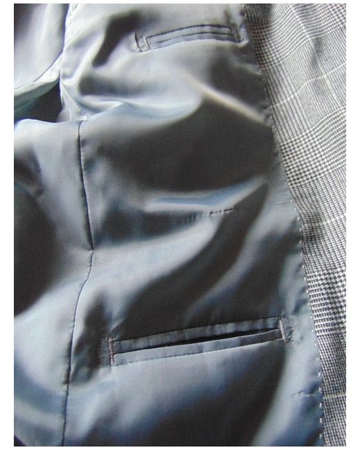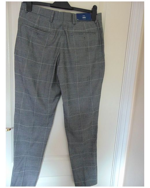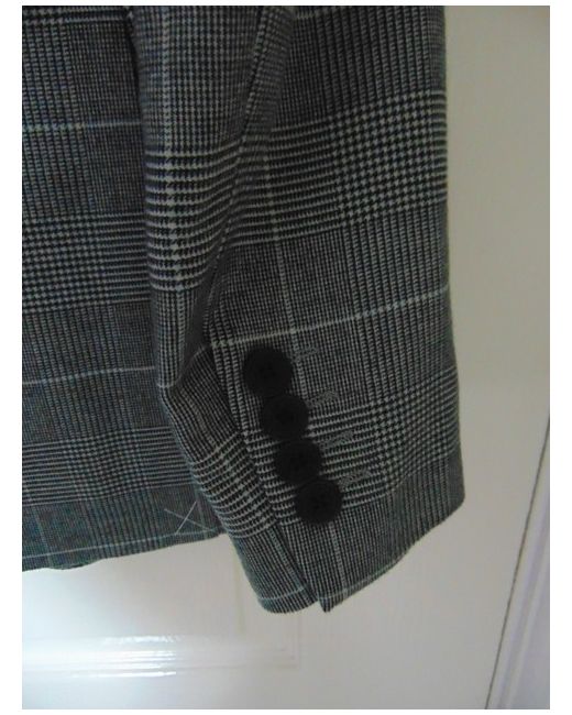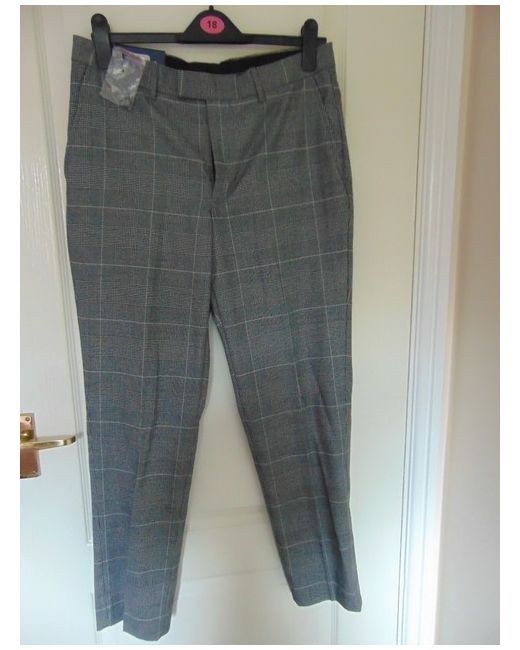Grey Check. Size ; Jacket 38S, Trousers 32Short. Polyester/ Viscose/Elastane mix.