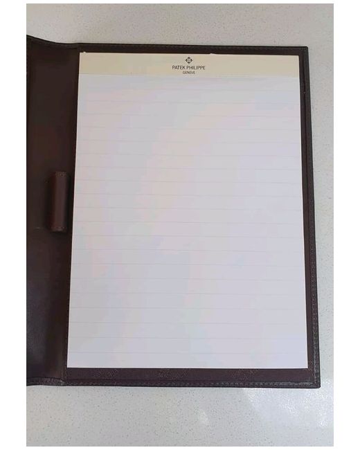 This is a beautiful leather bound notebook with refillable Patek Philippe paper. Never been used. Sold as seen.