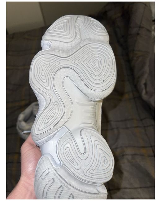 This is a pair of Ash grey Yeezy 500 trainers for men, featuring Boost technology. They are a size 7 UK, 9 US, and 39 EU. The sneakers are made of suede with a stylish design as part of the Yeezy 500 product line by Adidas.
