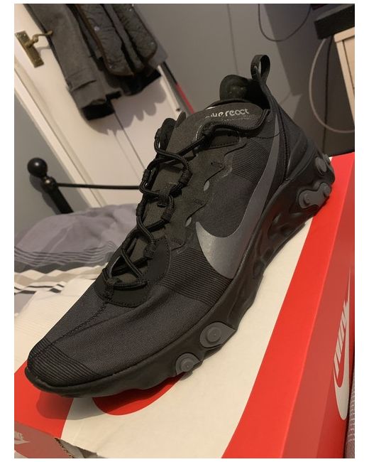 Nike react element 55 uk 12 in size such a sleek colour way triple black for these harsh months death Vader would be proud! Brand new proof of purchase could be provided item will be double boxed. Item be be sent via signed postage.