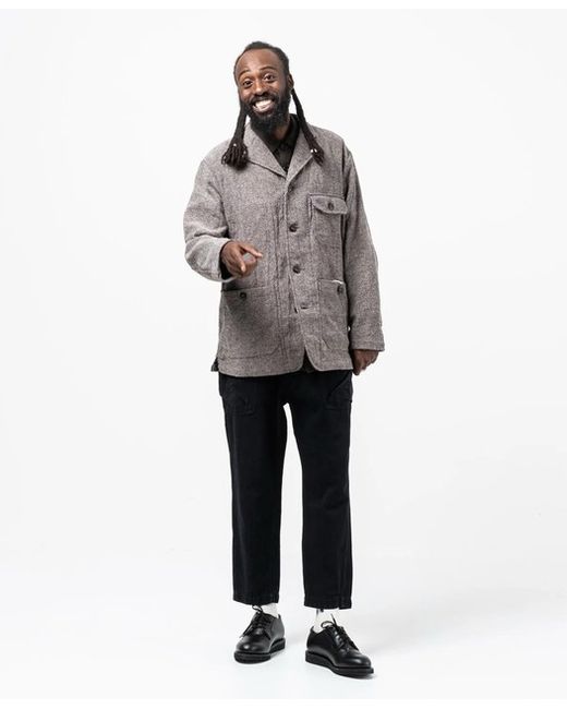 DETAILS Classic button down Adjustable waist Three front pockets Made in Japan Retail RRP £340 DESCRIPTIONS: Railroader Jacket Beige from Sage De Cret. Classic button down railroader jacket in a polyester/acrylic/cotton fabric. Three front pockets with button closure, one internal pocket and adjusable waist via drawstrings. Made in Japan. Ludjero is 179 cm tall, slim built and wears a S.