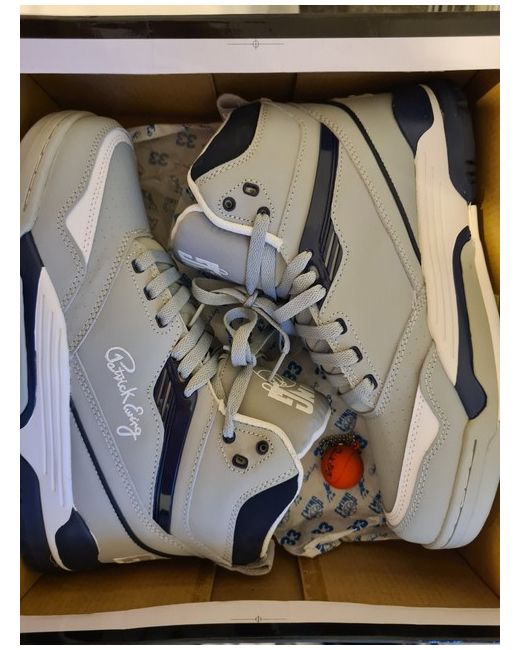 Elevate your sneaker game with the Patrick Ewing Center HI trainers. These stylish grey sneakers are designed for men with a UK shoe size of 8.5 and a US shoe size of 9.5. The brand, Patrick Ewing, is well-known for its quality footwear and these trainers are no exception. Featuring a comfortable fit and sleek design, these trainers are perfect for any occasion. The grey colour adds a touch of sophistication to any outfit, making them a versatile addition to your shoe collection. Don't miss out on this opportunity to own a pair of high-quality trainers from a renowned brand. Never worn, but a few scuffs marks on the sole. Original box. See photos.