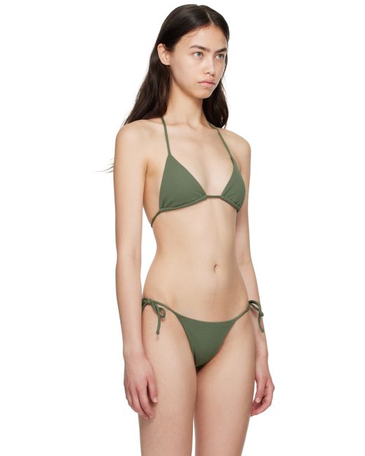 Stretch recycled nylon jersey bikini top. · Self-tie halter strap · Self-tie fastening at back · Full jersey lining Supplier color: Safari crinkle