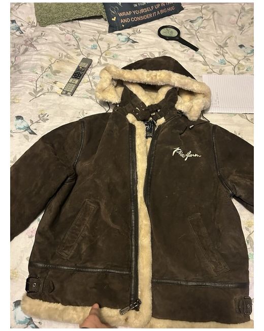 This vintage Phat Farm jacket is made of brown leather with a mid-length overcoat style. It features a zip closure, a removable hood, and a polyester lining, making it suitable for all seasons. The jacket is designed with a classic theme and includes bodywarmer pockets, making it a versatile and stylish option for both men and women in extra-large size. Perfect for winter, autumn, summer, and spring wear, this jacket combines practical features with a timeless design.