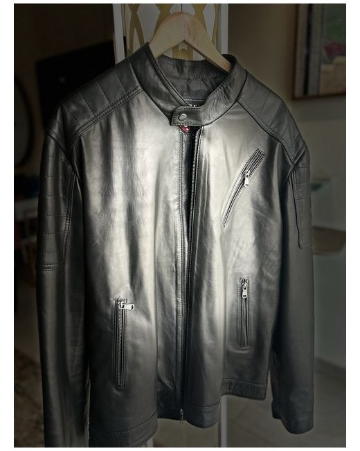 Leather made from baby lamb, 100% The best quality of leather. Jacket is new. We bought it £450. Leather is very very soft. Size shown is XXL but fits to an XL