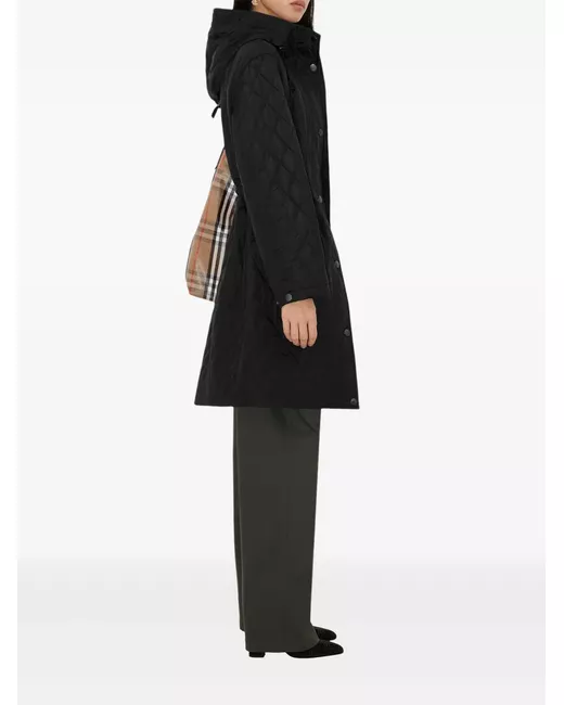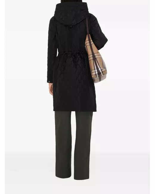 nero motivo a rombi trapuntato cappuccio regolabile chiusura con bottoni a pressione tasche frontali