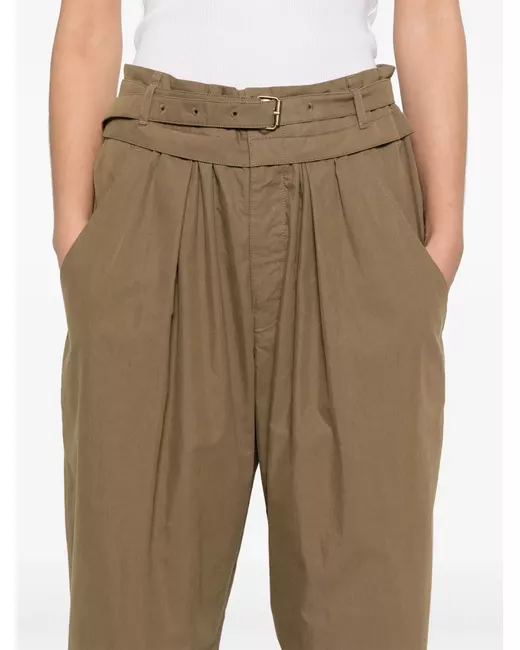 khaki front press-stud and zip fastening belted waist two side slash pockets two rear welt pockets