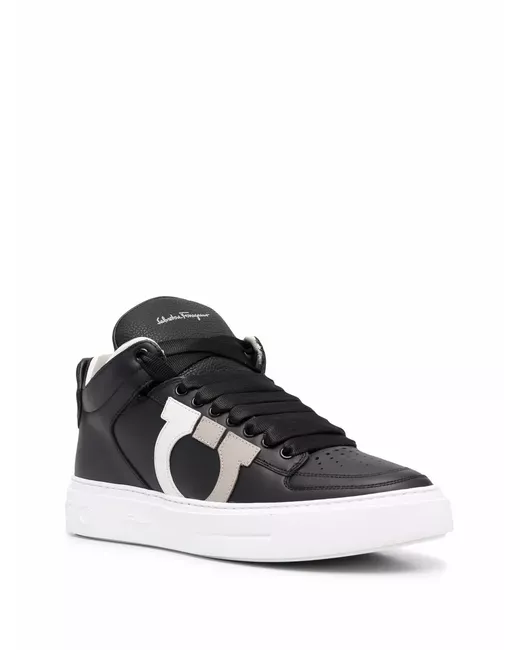 Stampa Gancini, punta tonda, chiusura frontale con lacci, linguetta con logo stampato e suola piatta in gomma. Materiale: pelle. Colore: nero.
