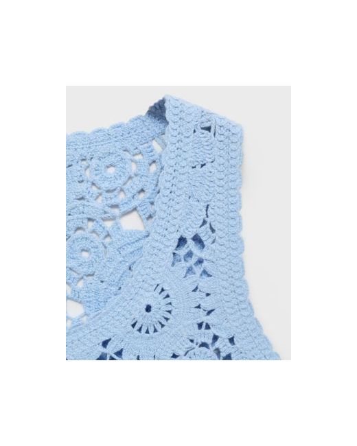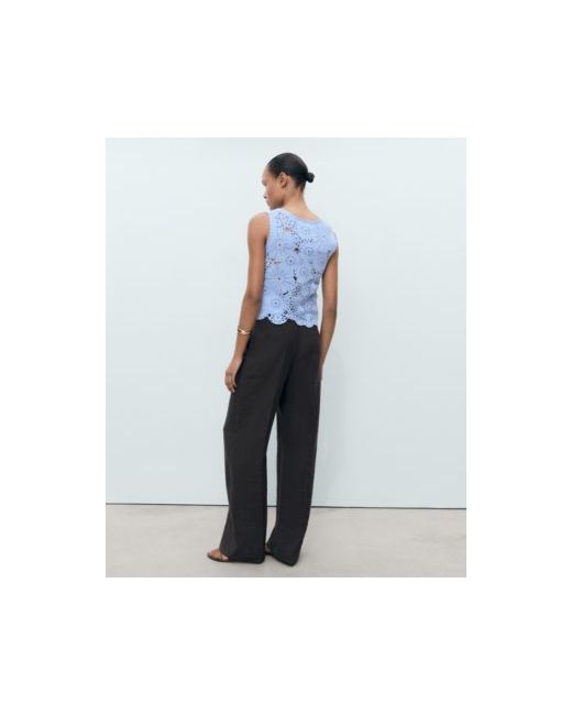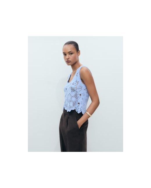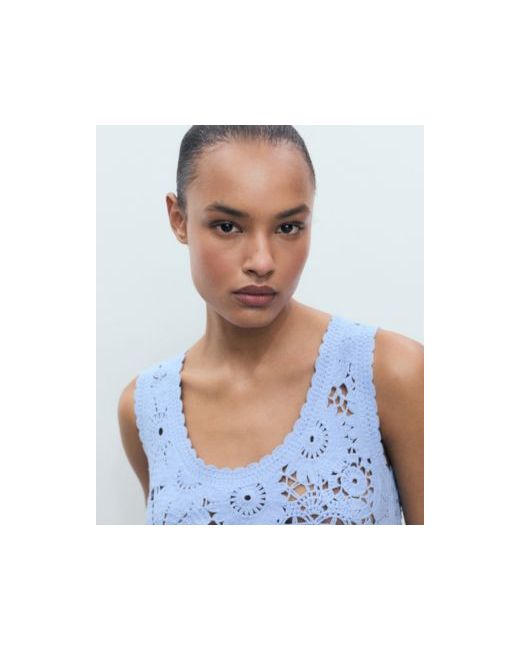 A fresh take on texture, the Crochet Top With Flowers from Mango delivers subtle detailing. Made from cotton-blend fabric, this top features crochet, straight, and floral design with round neck, sleeveless cut.