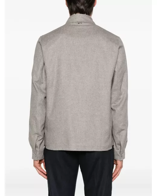 light grey button fastening patch pocket long sleeves straight hem welt pockets