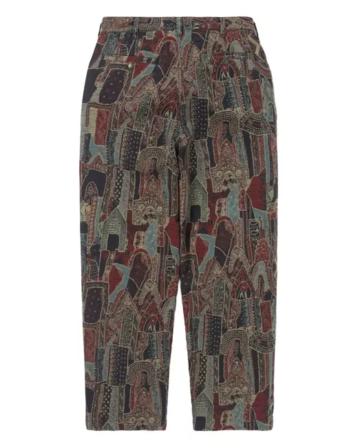 brown/multicoloured graphic print zip fly button fastening side pockets