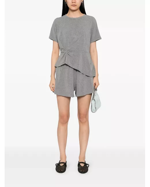 smoke grey top: sleeveless trousers: elasticated waistband two side slash pockets