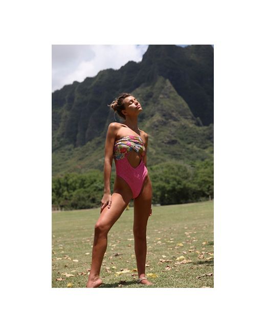 We love all the ways you can wear this one piece from our free-est Swim collection, featured in a jacquard print and textured fabrication with an adjustable self-tying closure for a convertible fit. **Fit:** Pull-on style, cheeky bottom coverage **Features:** Jacquard print, soft fabrication, self-tying closure, front and back cutouts, high-cut legs, convertible design, fully-lined **Why We ❤ It:** This convertible one-piece can be worn in a variety of different ways so that you can find your favorite fit! free-est Miley One-Piece at Free People in Hibiscus Harmony, Size: Small