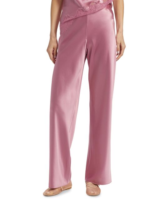 Crafted of smooth satin, Cami NYC's pull-on Bristol pants feature a straight-leg cut and clean, high-rise waist. Elasticized waist Pulls on 73% acetate/27% polyester Dry clean Imported SIZE & FIT Rise, about 11.5" Inseam: about 31" Leg opening: about 21.5" Model measurements: 5'10" tall Model is wearing a US size Small. Contemporary Sportswear - Trend > Cami Nyc > Saks Fifth Avenue > Barneys. Cami NYC. Color: Elderberry. Size: XS.