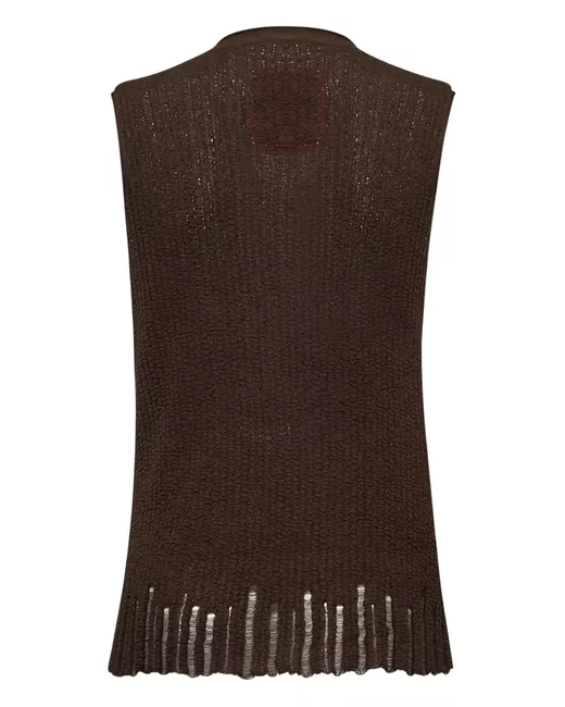 chocolate brown crew neck sleeveless ribbed knit distressed detailing