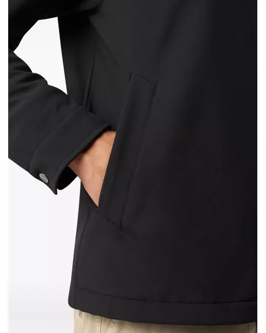 black zip fastening snap button cuffs welt pockets long sleeves