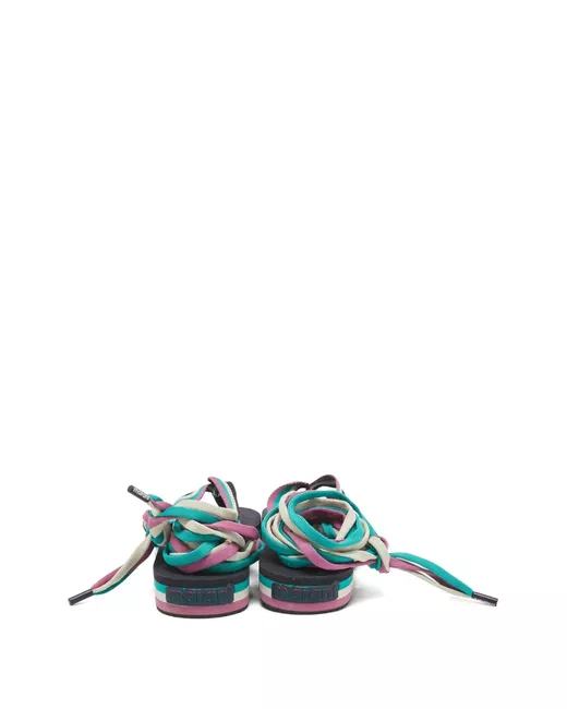 black/multicolour canvas tie-fastening ankle strap round open toe branded insole Condition: UNWORN. This item is previously owned but remains unworn and in its original condition. However, it does not come with its original tags.