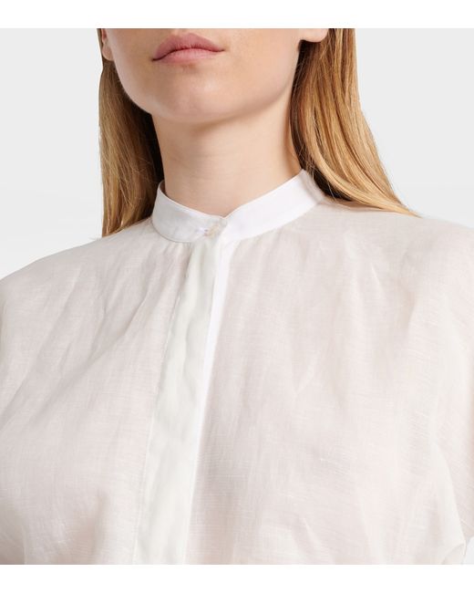 Materiale: 76% cotone, 24% lino. Trattamento: lavaggio professionale. Made in Italy. Colore del designer: Blanc. Colore dell'articolo: bianco. Contiene parti non tessili di origine animale. Collo: alla coreana. Chiusura: abbottonatura nascosta. Maniche: raglan. Orlo: rotondo. Cotone.