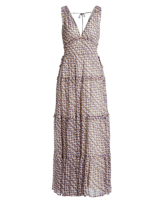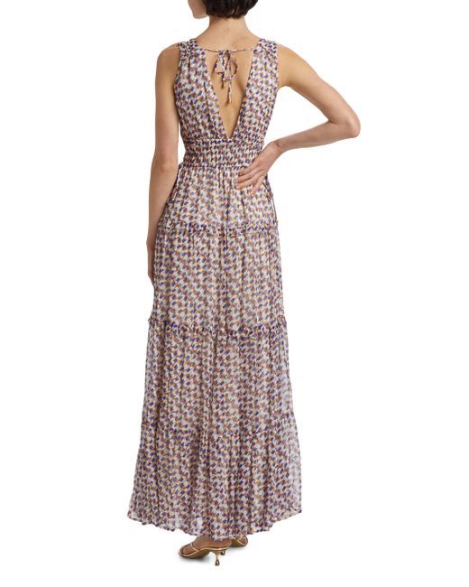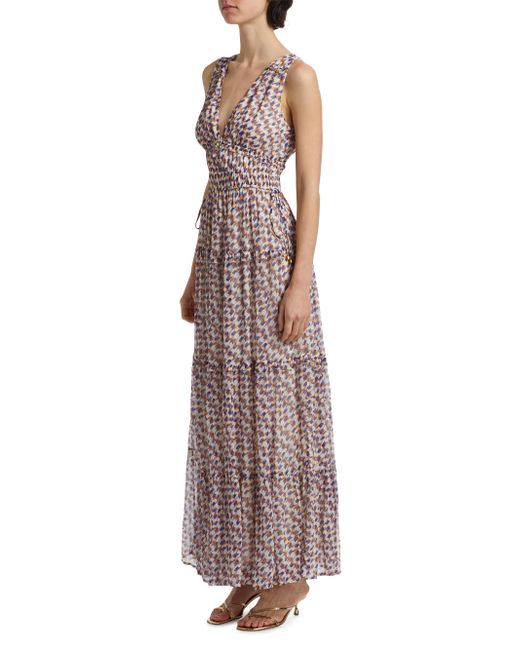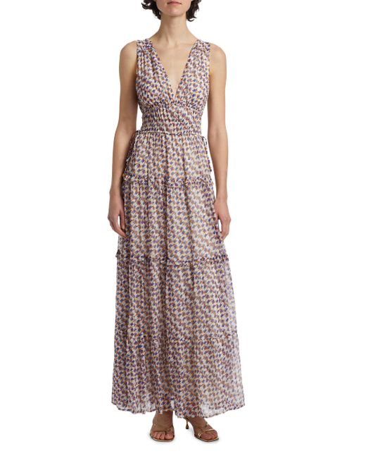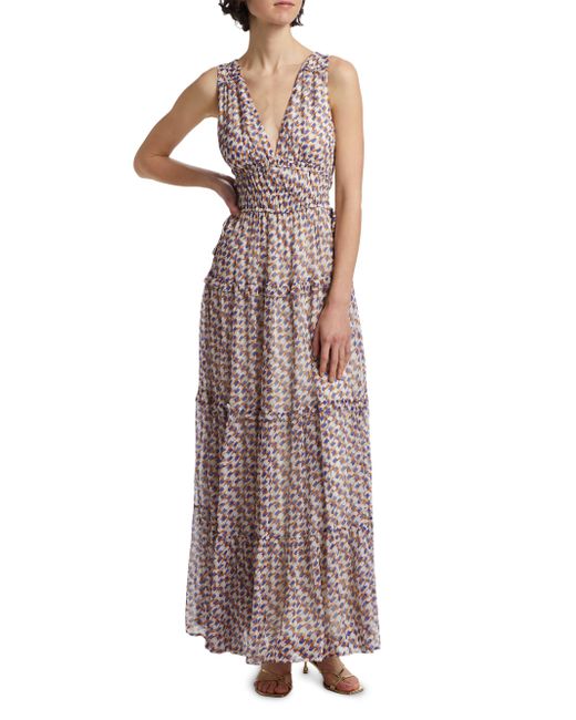 Kivari's Rochelle sleeveless maxi dress is adorned with a geometric print featuring a deep V-neckline with soft seams, with an adjustable drawcord at the waist. V-Neck Sleeveless Pulls over 100% viscose Dry clean Imported SIZE & FIT About 57.5" from shoulder to hem Model measurements: 5'10" tall Model is wearing a US size Small. Contemporary Sportswear - Trend > Kivari > Saks Fifth Avenue > Barneys. Kivari. Color: Rochelle. Size: XS.