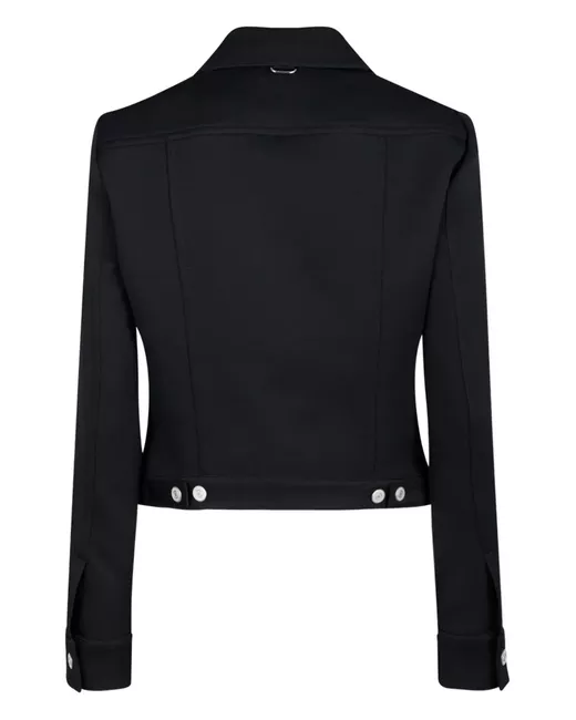black embossed logo to the front spread collar front press-stud fastening long sleeves two front flap pockets