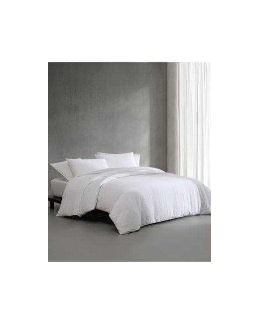 The Puckered Grid Duvet Cover Set in white is a study in texture and restraint. Woven in a subtle jacquard with a softly puckered grid, it brings quiet dimension to the bed. The fabric is breathable, with a gentle stretch and an effortless drape. The reverse, in smooth cotton percale, offers a cool, tailored contrast.