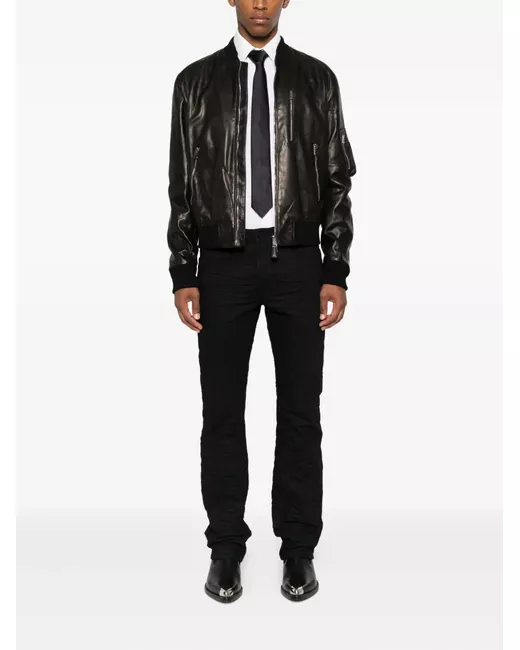 Zip-up leather bomber jacket