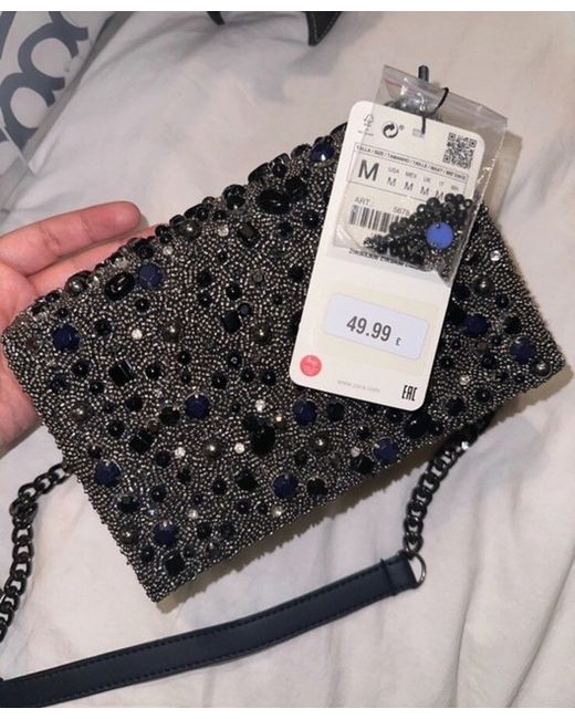 Zara rhinestone cross body bag! Never used, still has tags. It’s a dark navy, velvet material. Can be work on the side or cross the body! Rrp: 49.99 L:19cm W:12cm D:6cm I have a iPhone 14 Pro Max. It fits in well along side with a body spray and my card holder. This is an example of how much you can fit in. Brand new with tags. I love collecting bags Im just having a massive clear out! Please have a look at my other items that are up for sale!