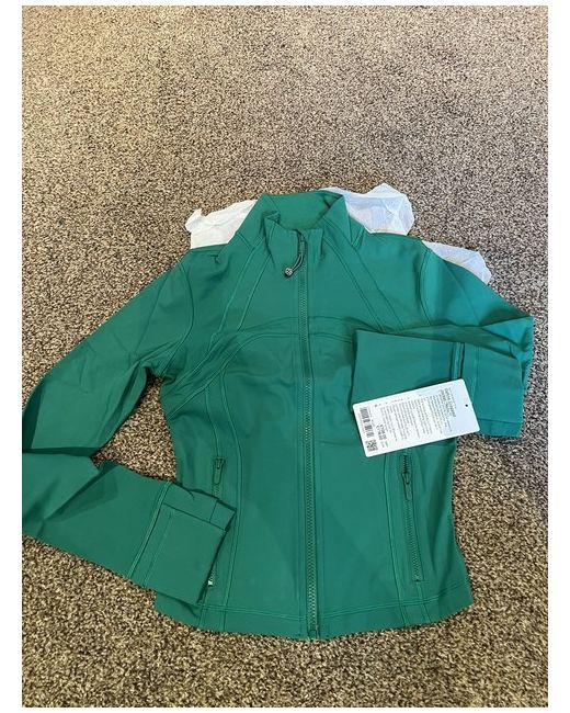 The Lululemon Define Cropped Jacket is a stylish and functional activewear piece perfect for springtime activities like yoga. Made from durable nylon outer shell material and insulated with polyester, this long-sleeve jacket features a zip closure for easy wear. The cropped length adds a trendy touch, while the green colour adds a pop of vibrancy to your wardrobe. With a size 6 fit and machine washable care instructions, this jacket from the Lululemon Define product line is a practical and fashionable choice for women looking for a versatile outerwear option.