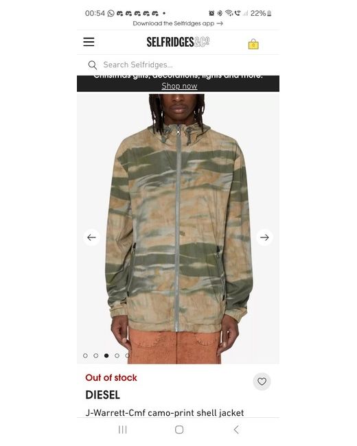 Brand new never worn mens Diesel Jacket - medium. Still in its unopened bag with tags. Number 69 on the zip. Lauded as “the rebel brand” from Italy, Diesel is unafraid of defying trends – it’s been this way since Renzo Rosso debuted the brand in ’78. From distressed denim to clothing, footwear and accessories, each and every piece is informed by the renegade label’s passion for eyebrow-raising style and authenticity; something that’s won the brand scores of fans from right across the world. Going against the grain is what this label does best. Diesel shell jacket 100% polyamide Zip fastening Regular-fit, camo-print, drawstring hood and hem, two zip pockets and elasticated cuffs, mesh lining Machine wash cold Model is 5ft 10in/1.78m and wears a size medium Lightweight, non-stretch