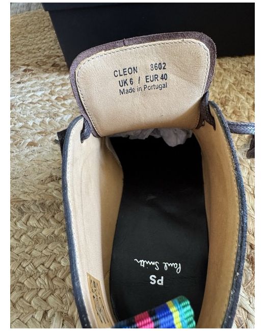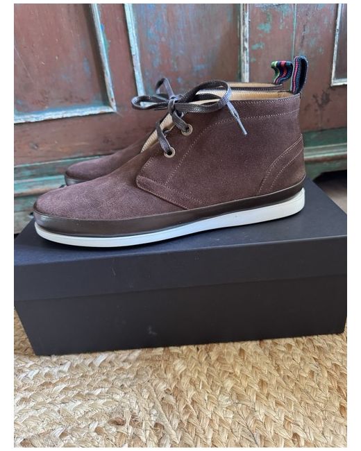 These Men's Brown Paul Smith Cleon Boots in size 6 are a stylish and versatile choice for casual occasions. With a round toe shape, lace-up closure, and ankle shaft style, they offer both comfort and a trendy look. Crafted from leather with a suede upper, they are designed to last throughout the seasons of autumn, winter, and spring. The lace accents add a touch of sophistication to this Chukka-style boot, making them a standout addition to any man's wardrobe. Made in Portugal by the renowned brand Paul Smith, these boots are sure to be a statement piece for any outfit. Come with original box and spare laces.